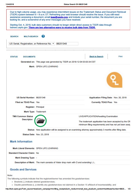 [미국/상표] Open Life Learning